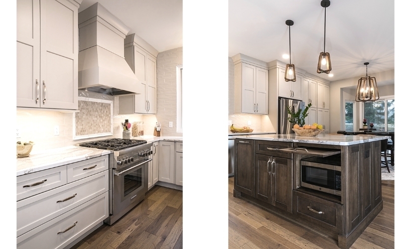This homeowner wanted a refreshed kitchen with lots of room to prepare food and a large stove to cook on. She also asked for more storage, and a cabinet that could hide the microwave when it wasn't in use