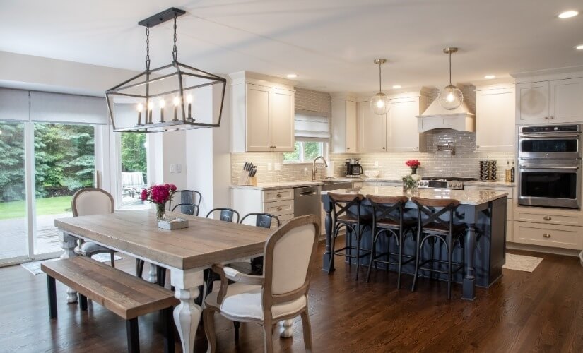 This client had a builder grade wide open kitchen floorplan, but it was outdated and lacked a designer's touch.