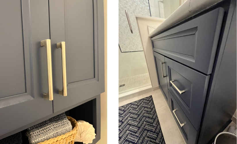 This bathroom renovation project centered around creating a luxurious and modern space, with the shower as the focal point. The homeowners wanted a design that was both functional and visually stunning, so we began by installing a large, walk-in shower with custom tile work. The shower features a beautiful framed-in tile design that adds depth and elegance to the space. The intricate tile pattern draws the eye, serving as the centerpiece of the bathroom and providing a touch of sophistication. To enhance the shower’s open and airy feel, we installed sleek glass doors that allow the tile work to be fully appreciated. The frameless glass not only adds a modern touch but also makes the bathroom feel more spacious. The glass doors seamlessly blend with the rest of the design, creating a clean and cohesive look. This combination of tile and glass creates a spa-like atmosphere, perfect for unwinding after a long day.